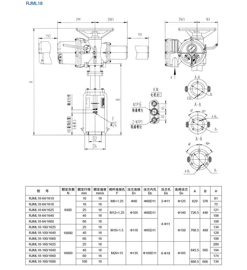 RJML直行程執(zhí)行器結(jié)構(gòu)尺寸