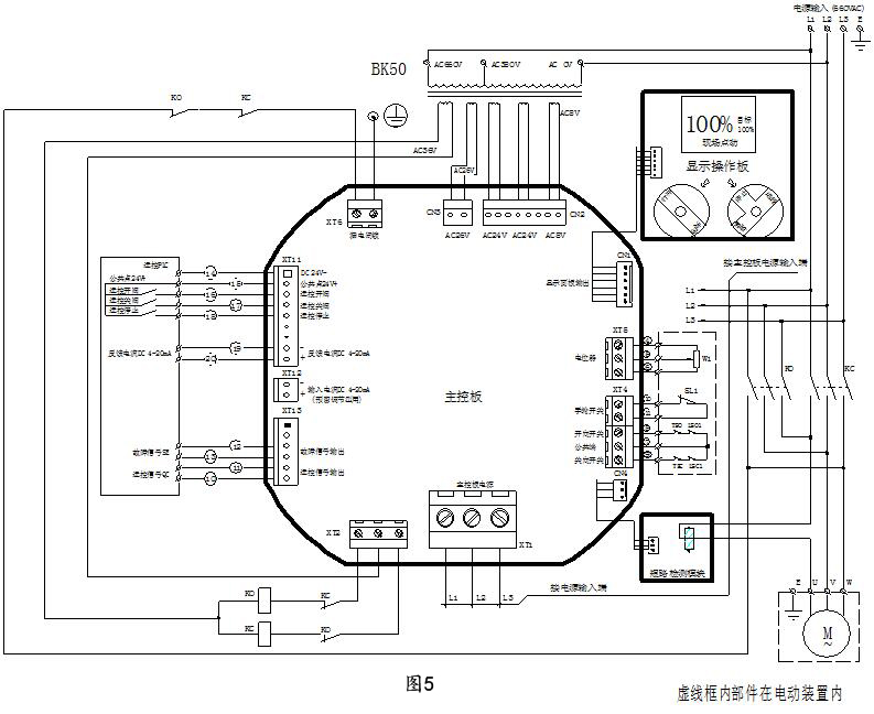 4.7.1.3 主控板:主控板安裝在機(jī)身內(nèi),內(nèi)置微處理器,實(shí)現(xiàn)電動(dòng)執(zhí)行器智能控制。主控板主要功能包括:相序識(shí)別電路;控制電源處理;漏電檢測(cè)電路;模擬信號(hào)輸出控制;開關(guān)信號(hào)輸入檢測(cè);與面板通信處理等。