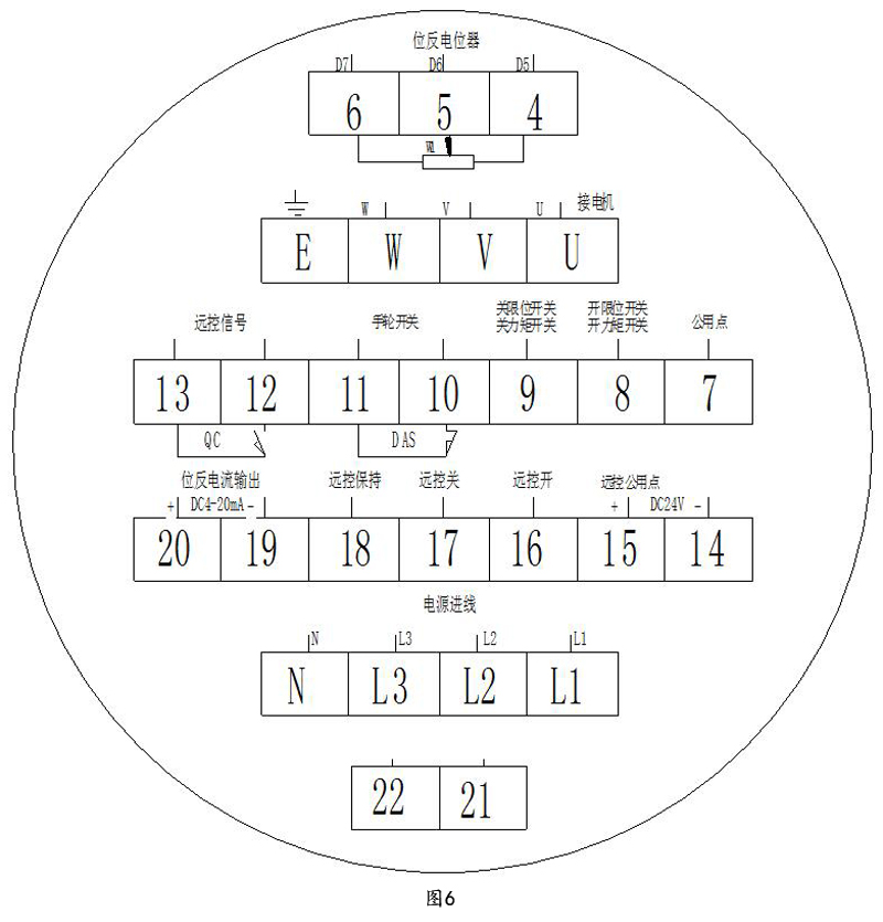 4.6控制箱內(nèi)部接線原理圖見(圖5)、出線端子圖見(圖6)
