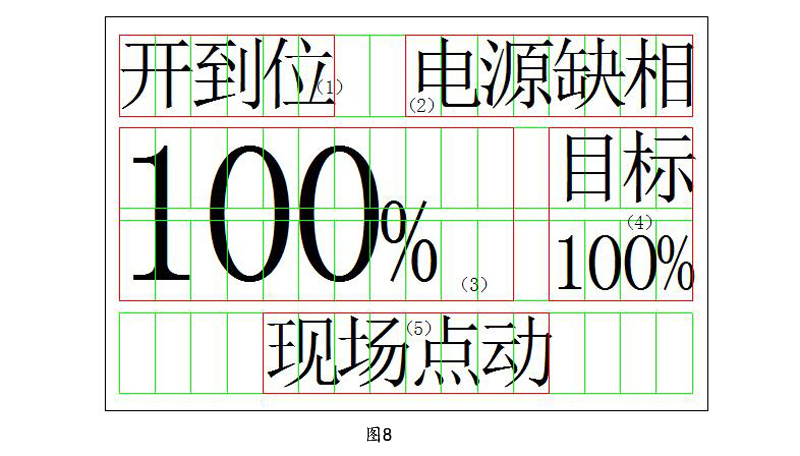 4.7.2.1.5目標(biāo)位顯示:該位置設(shè)置2個(gè)16*16點(diǎn)陣+4個(gè)16*8點(diǎn)陣。分別顯示“目標(biāo)”和遠(yuǎn)程輸入開度百分比,在模擬控制丟信狀態(tài)顯示丟信;