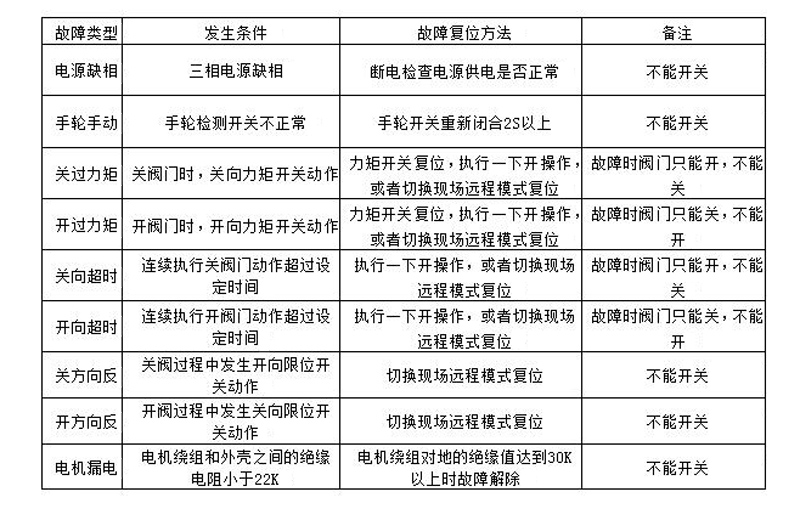 4.4.3過力矩保護(hù):當(dāng)電動(dòng)執(zhí)行器向開向或關(guān)向運(yùn)行出現(xiàn)卡澀故障時(shí),將信號(hào)送進(jìn)控制箱主控板(開關(guān)量信號(hào))中,模塊實(shí)現(xiàn)單方向保護(hù),實(shí)現(xiàn)單方向鎖定,解鎖時(shí)需向相反方向運(yùn)行3s,即可實(shí)現(xiàn)解鎖或停電解鎖;當(dāng)出現(xiàn)開閥、關(guān)閥兩個(gè)方向卡澀故障時(shí),雙方向運(yùn)行均能保護(hù),主控板實(shí)現(xiàn)雙方向保護(hù),并應(yīng)停電解鎖。