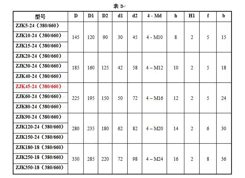 4.3 ZJK系列型號(hào)列表見(jiàn)(表1)