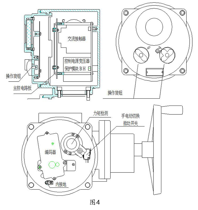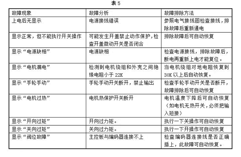 4.5.4過(guò)力矩保護(hù):當(dāng)電動(dòng)執(zhí)行器向開(kāi)向或關(guān)向運(yùn)行出現(xiàn)卡澀故障時(shí),將信號(hào)送進(jìn)控制箱模塊(開(kāi)關(guān)量信號(hào))中,模塊實(shí)現(xiàn)單方向保護(hù),實(shí)現(xiàn)單方向鎖定,解鎖時(shí)需向相反方向運(yùn)行3s,即可實(shí)現(xiàn)解鎖或停電解鎖;當(dāng)出現(xiàn)開(kāi)閥、關(guān)閥兩個(gè)方向卡澀故障時(shí),雙方向運(yùn)行均能保護(hù),模塊實(shí)現(xiàn)雙方向保護(hù),并應(yīng)停電解鎖。