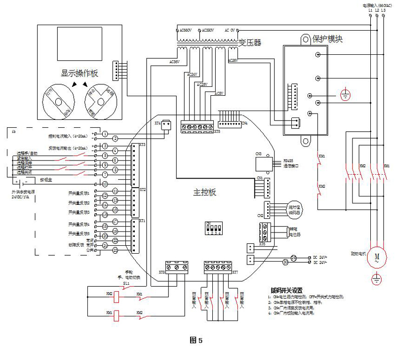 4.7電動(dòng)裝置接線原理圖見(jiàn)(圖5)、出線端子圖見(jiàn)(圖6)