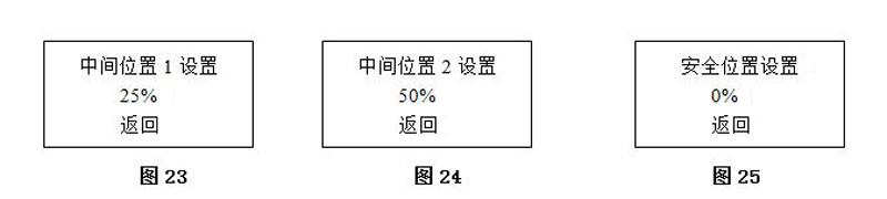 4.7.3.14中間位1設(shè)置如(圖23):中間位置1用于閥門(mén)位置反饋用,可自由設(shè)定,默認(rèn)25%